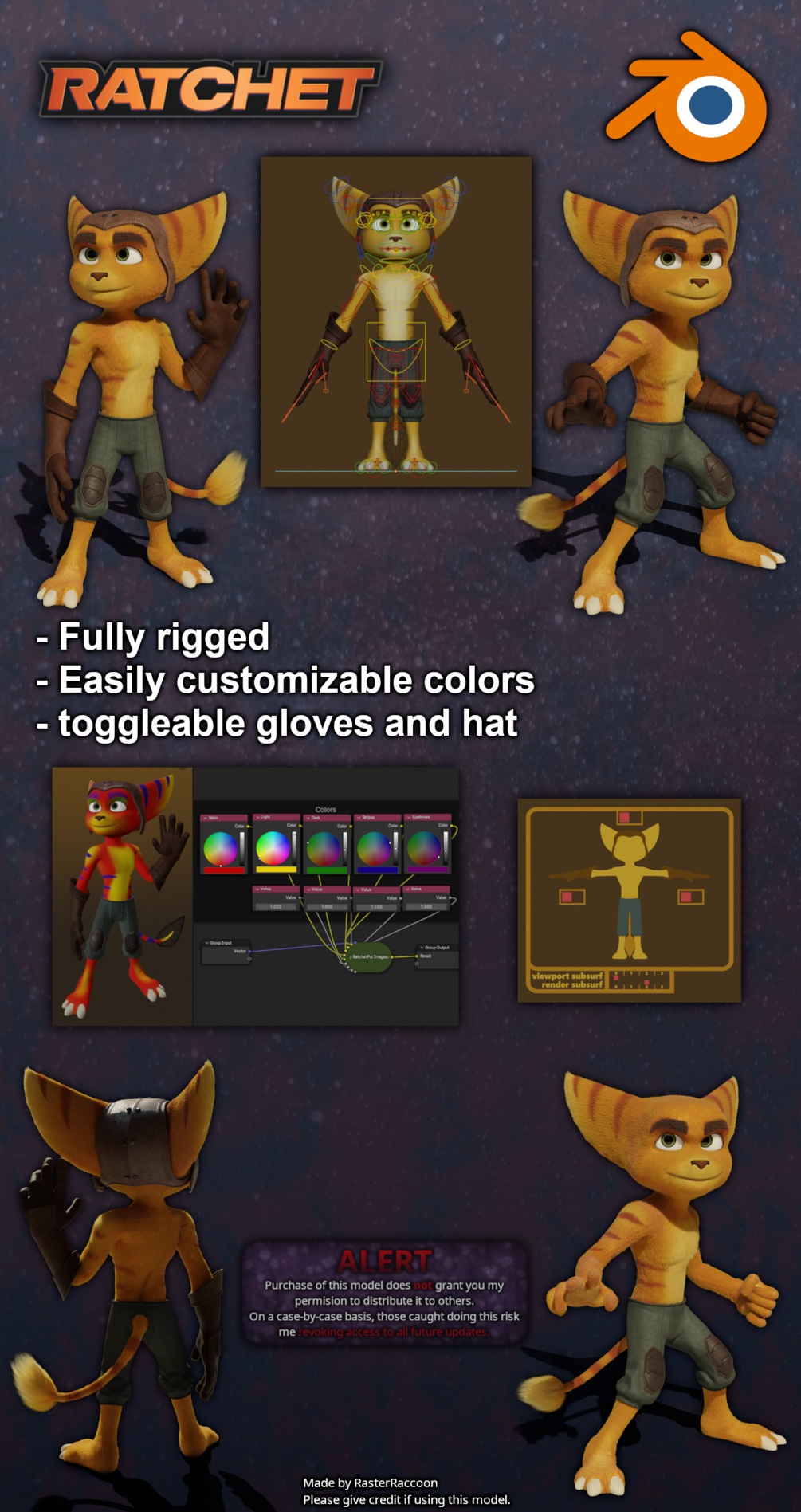 A 3D model of Ratchet from Insomniac's Ratchet & Clank series.
