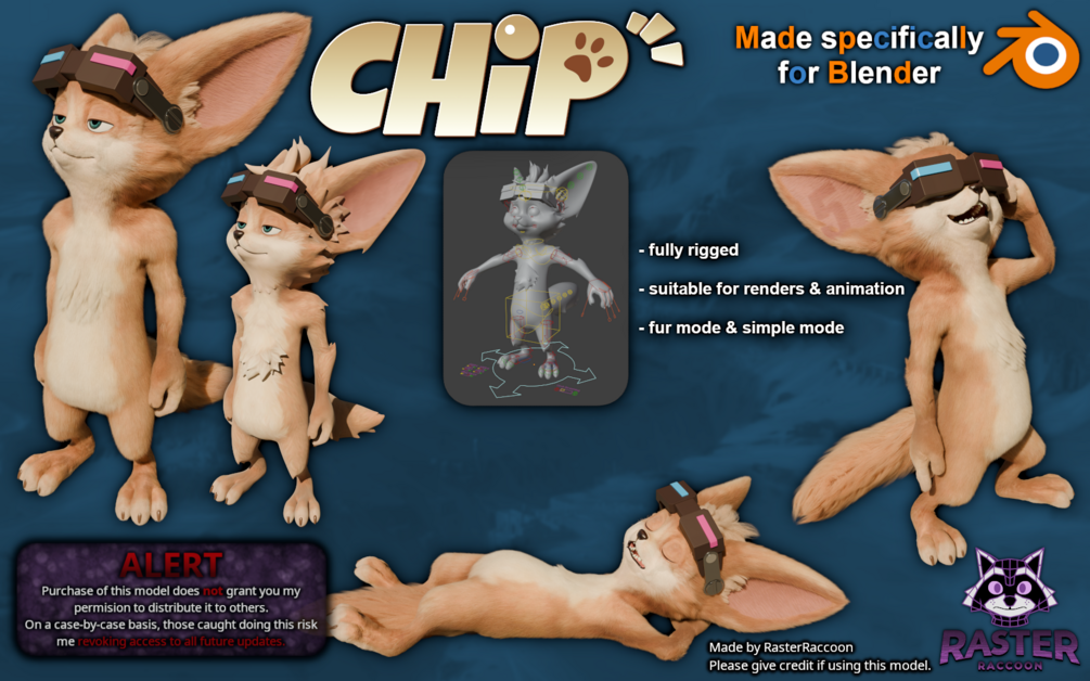 a zip file containing this 3D model's .blend file and textures, along with free access to future updates! THIS MODEL IS NOT FOR VRCHAT.